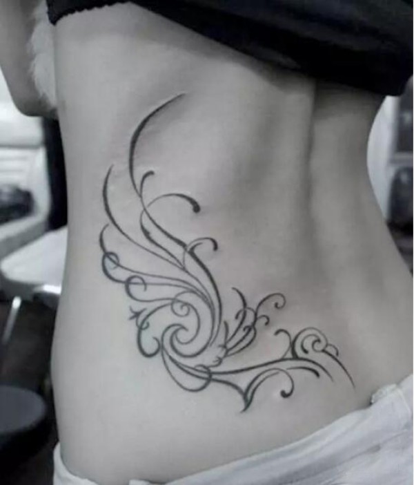 美女侧腰性感的蝴蝶花卉藤蔓纹身图图片