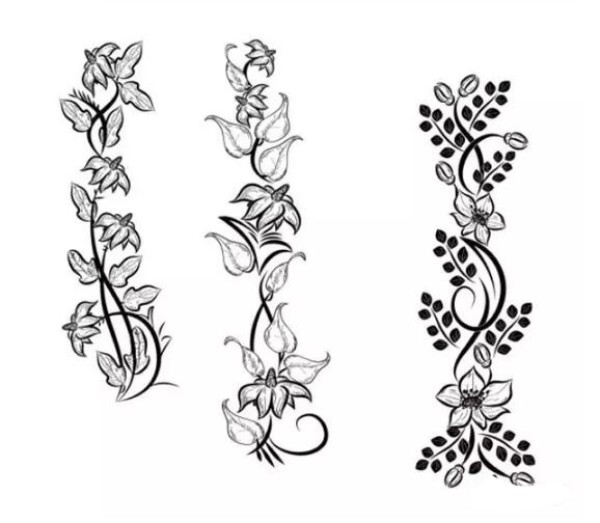 藤蔓纹身图案 千姿百态的黑灰或彩色的藤蔓纹身图案