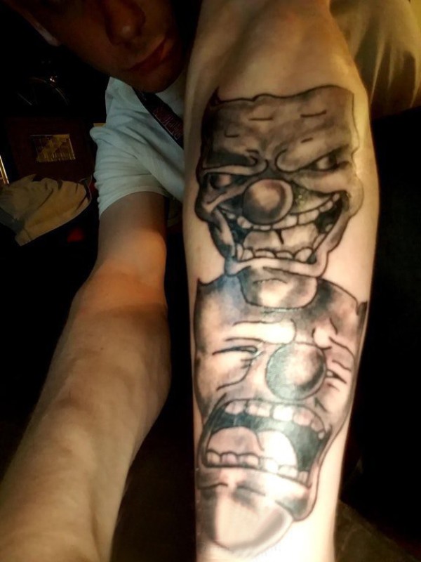 纹身小丑面具 男生手臂上可笑的小丑面具纹身图片