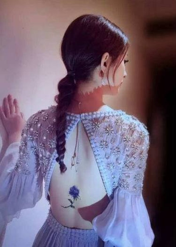 赵丽颖的纹身 明星后背上唯美的花朵纹身图片