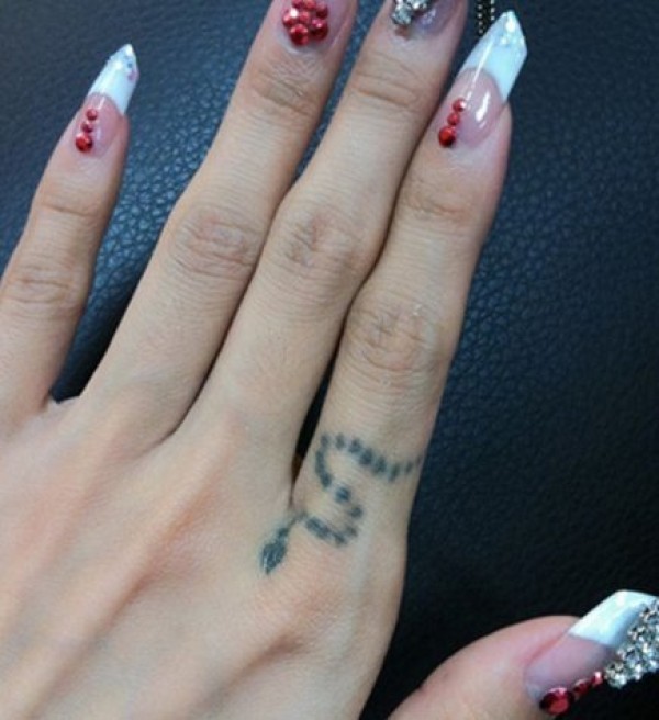 蔡依林纹身图片 明星手指上黑色的蛇纹身图片