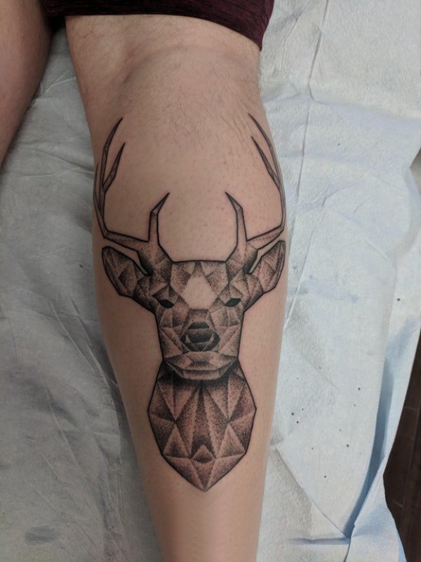 小动物纹身 男生小腿上黑色的几何麋鹿纹身图片
