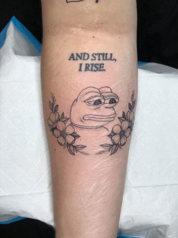 小动物纹身 男生手臂上青蛙和植物纹身图片