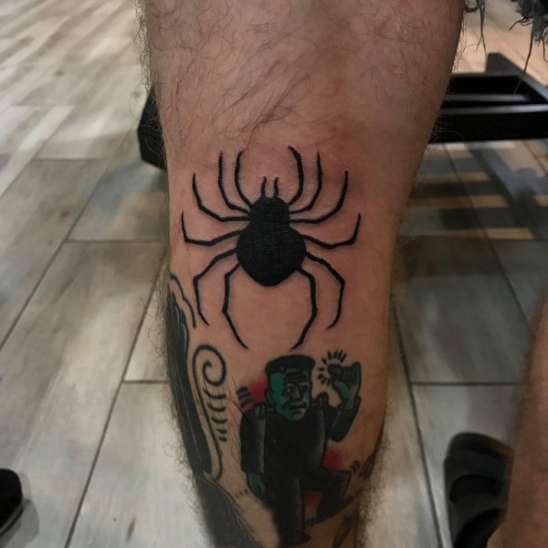 纹身蜘蛛 男生小腿上黑色的蜘蛛纹身图片