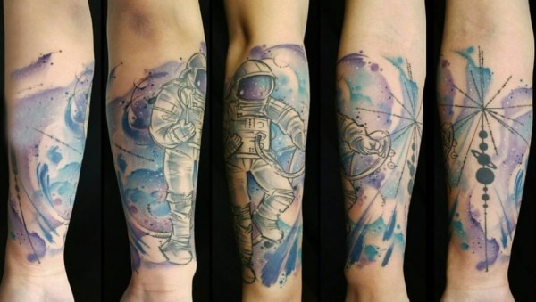 手臂纹身图片 男生手臂上彩色的宇航员纹身图片