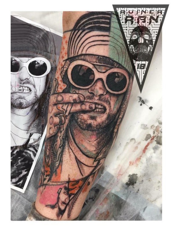 人物肖像纹身 男生手臂上彩绘的人物肖像纹身图片