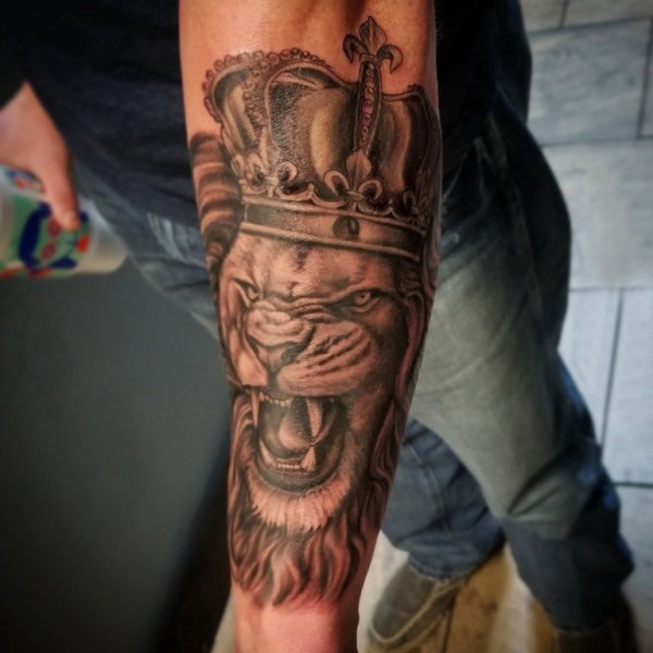狮子王纹身 男生手臂上黑灰色的狮子王纹身图片