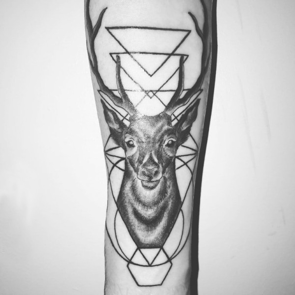 手臂纹身图片 女生手臂上几何和鹿纹身图片