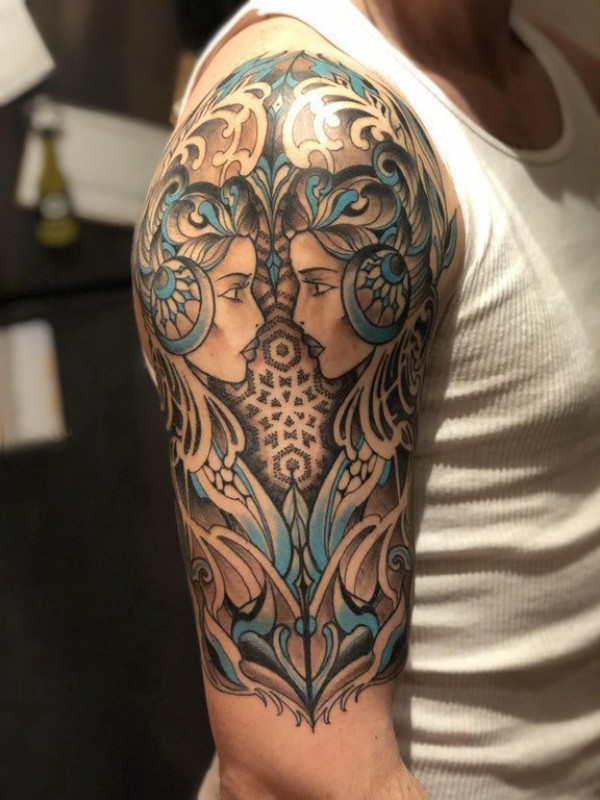 双子座纹身手稿_29张十二星座之双子座纹身图案手稿