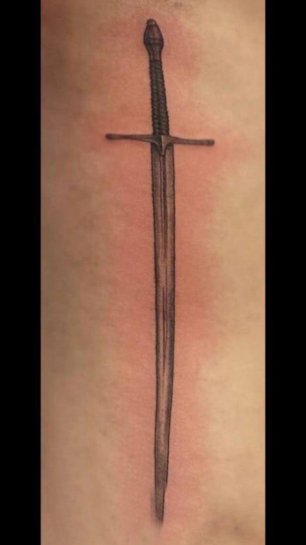 手臂纹身图片 男生手臂上黑色的宝剑纹身图片