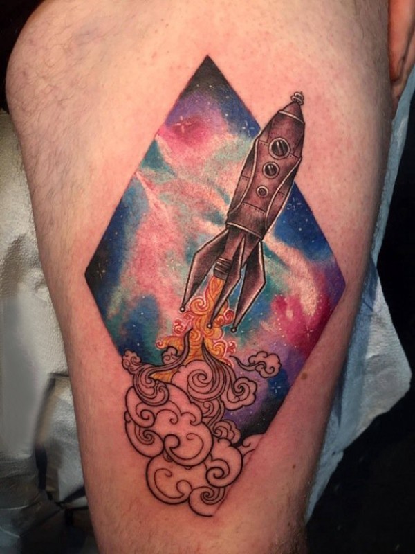 大腿纹身男 男生大腿上菱形和火箭纹身图片