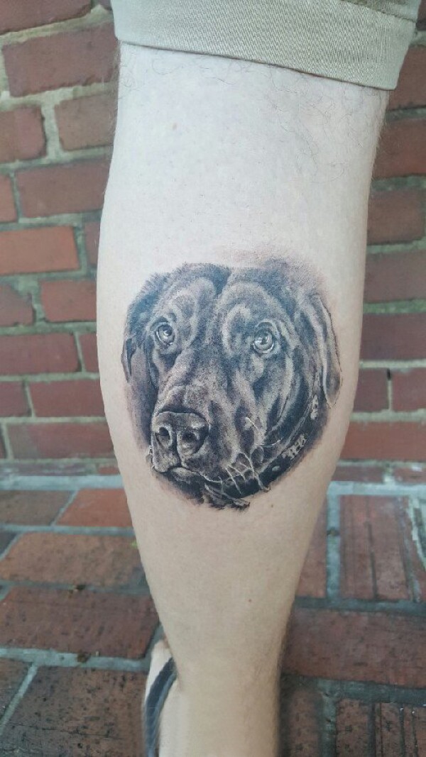 欧美小腿纹身 男生小腿上黑色的小狗纹身图片