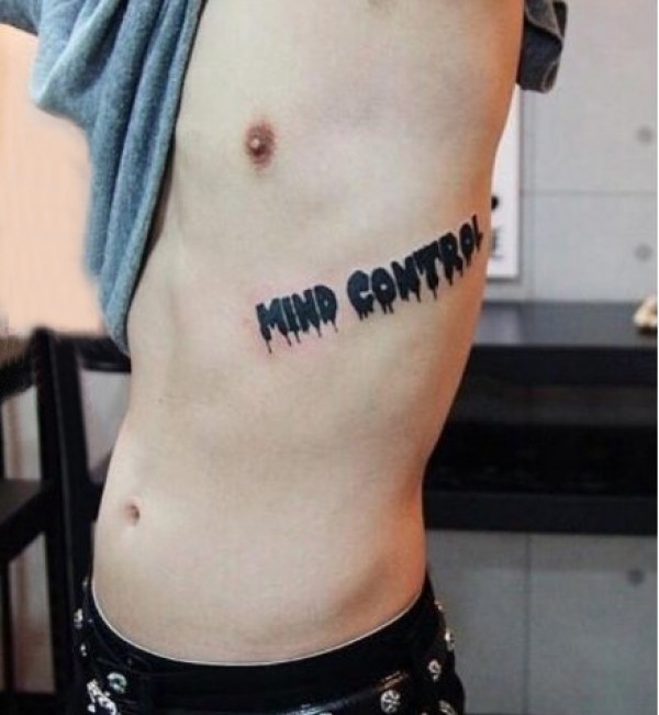 权志龙的纹身 明星侧腰上泼墨和英文纹身图片
