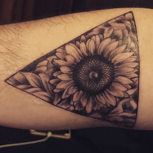 欧美小腿纹身 男生小腿上三角形和向日葵纹身图片