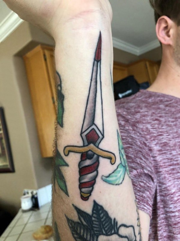 欧美匕首纹身 男生手臂上彩绘的欧美匕首纹身图片