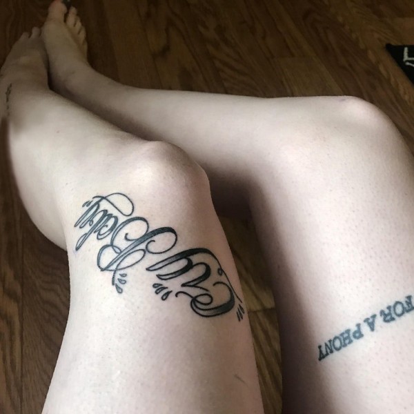 花体英文纹身 女生大腿上黑色的英文纹身图片