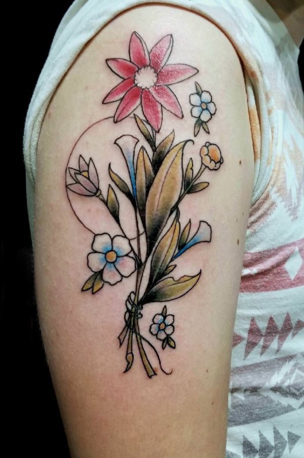 花卉纹身男 男生大臂上彩绘的花卉纹身图片