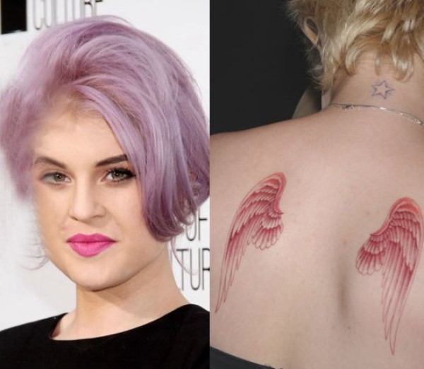 美国纹身明星 凯莉·奥斯本后背上彩绘的翅膀纹身图片