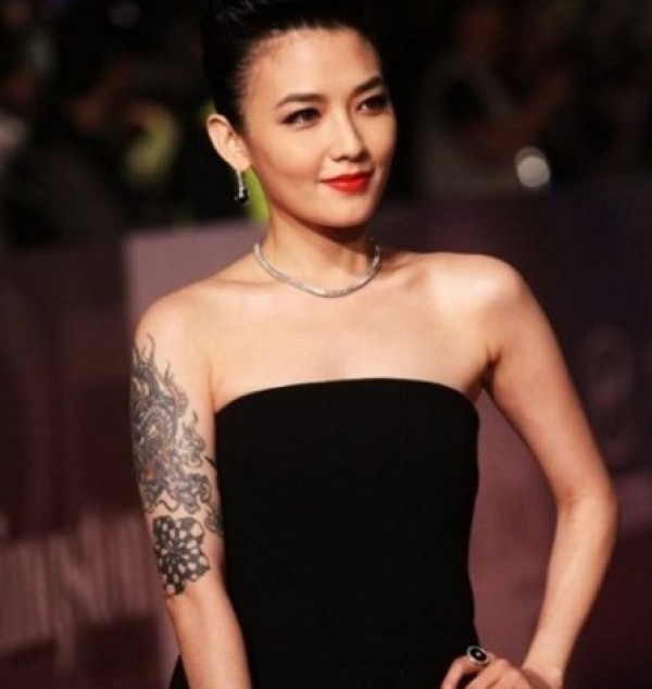 范晓萱的纹身 明星手臂上创意的龙纹身图片
