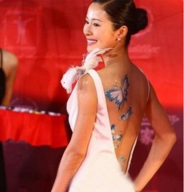 中国纹身明星 明星后背上唯美的蝴蝶纹身图片
