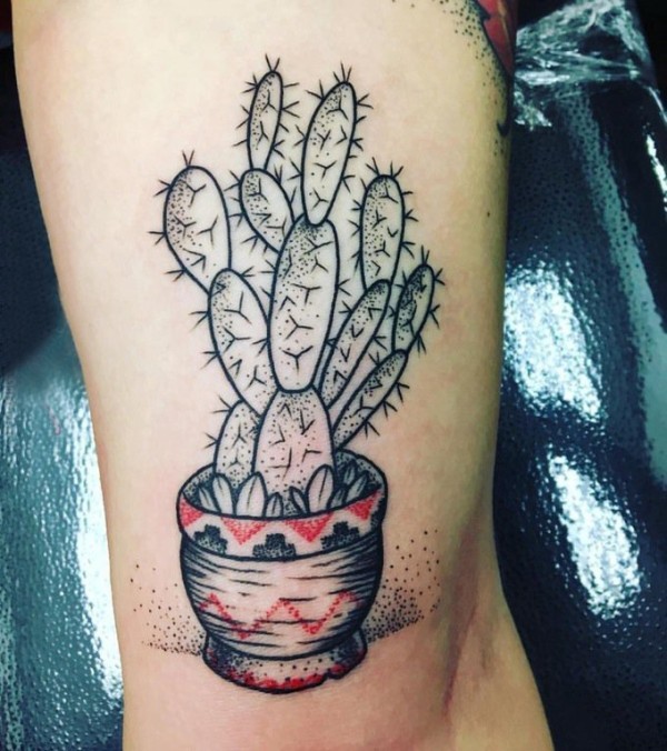 植物纹身 女生大腿上彩色的仙人掌纹身图片
