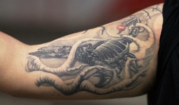 蝎子图片纹身 男生手臂上素描的蝎子纹身图片