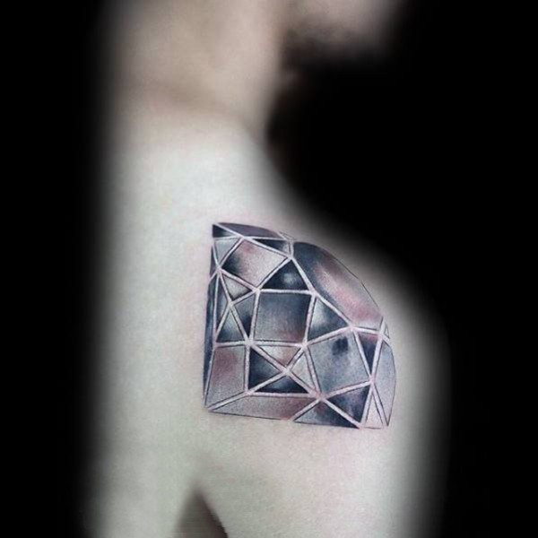 纹身钻石 男生后肩上黑色的钻石纹身图片