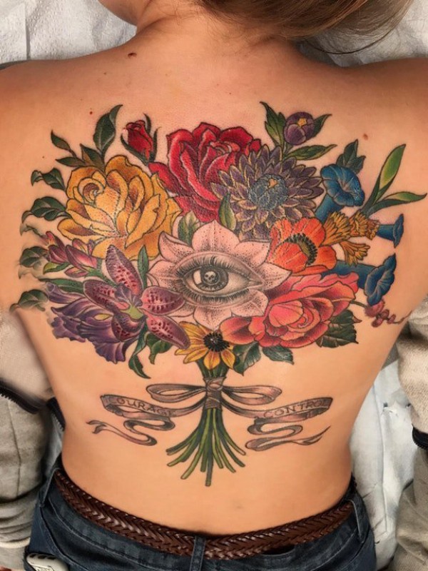 纹身图案花朵 女生后背上彩绘的花朵纹身图片