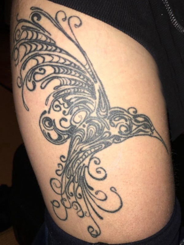纹身鸟 女生大腿上黑色的鸟纹身图片