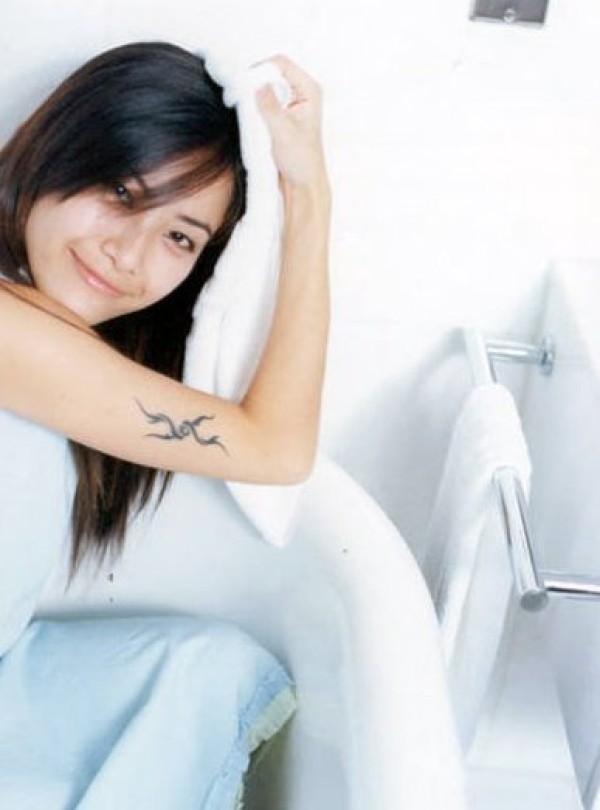 明星纹身 徐怀钰手臂上黑色的抽象线条纹身图片