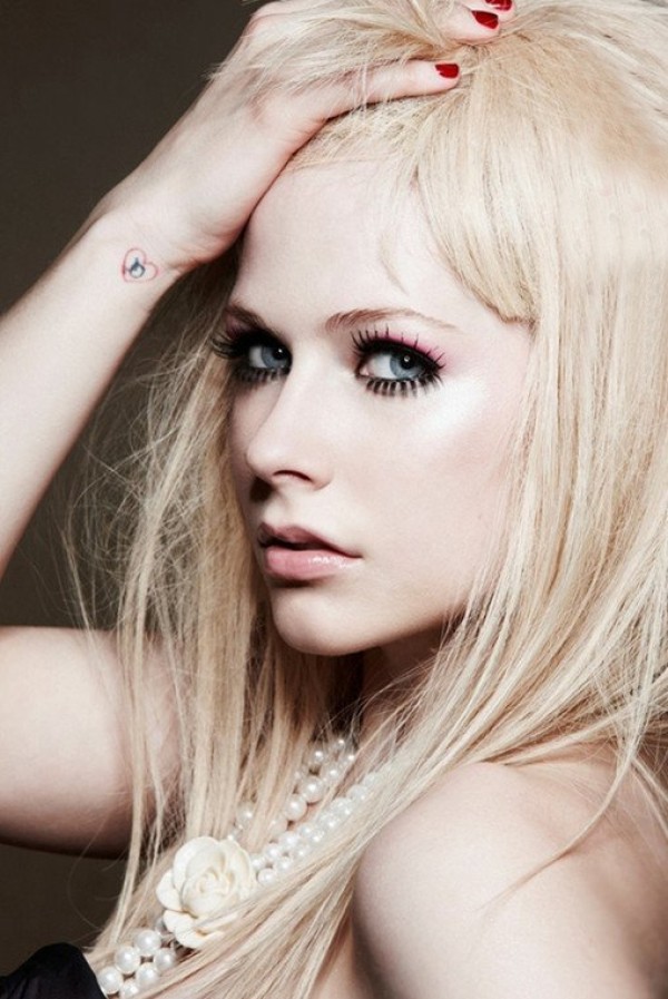 美国纹身明星 艾薇儿手臂上黑色的音符纹身图片