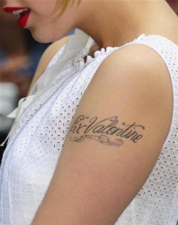 美国纹身明星 明星手臂上黑色的英文纹身图片