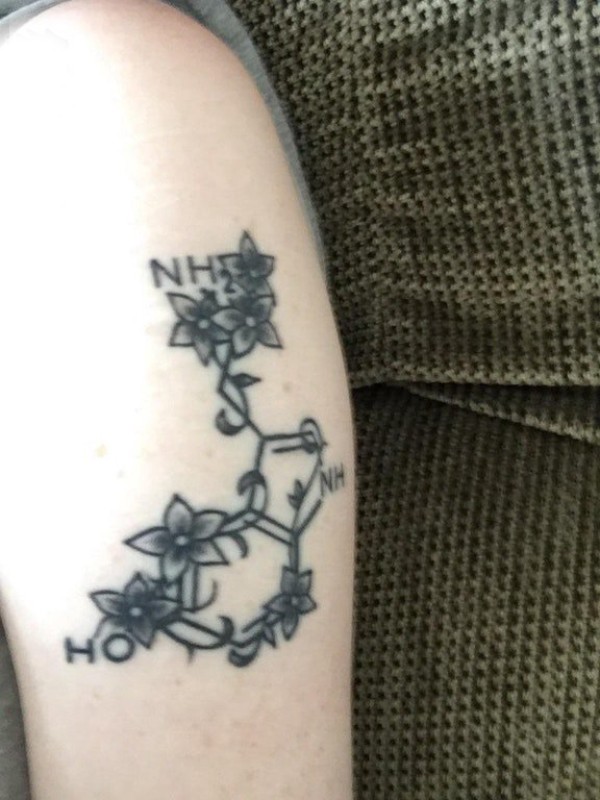 化学元素纹身 女生手臂上花朵和化学元素纹身图片