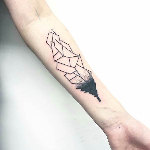 几何元素纹身 女生手臂上黑色的羽毛纹身图片