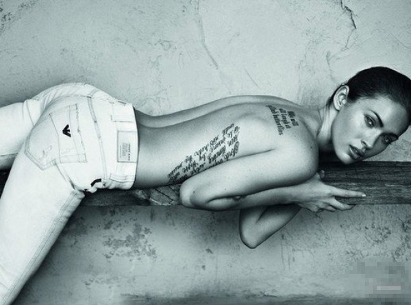 国际纹身明星 明星后背上黑色的英文纹身图片