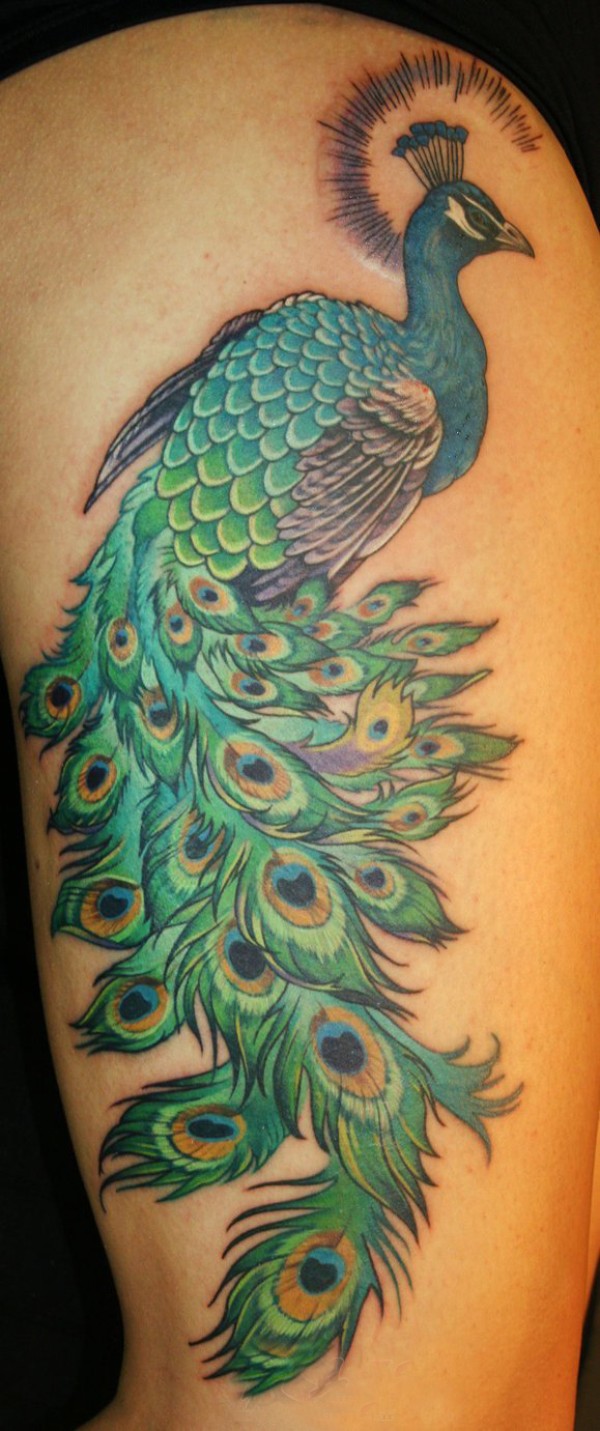孔雀纹身图片 色彩斑斓的孔雀纹身图案