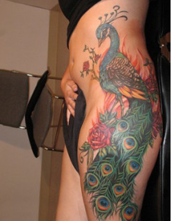 孔雀纹身图片 色彩斑斓的孔雀纹身图案