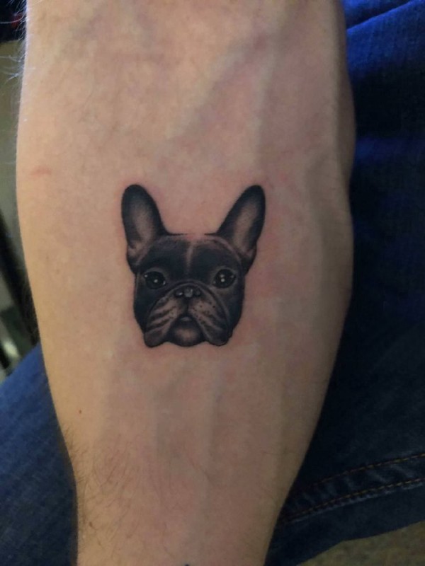 小狗纹身图片 男生手臂上黑色的小狗纹身图片