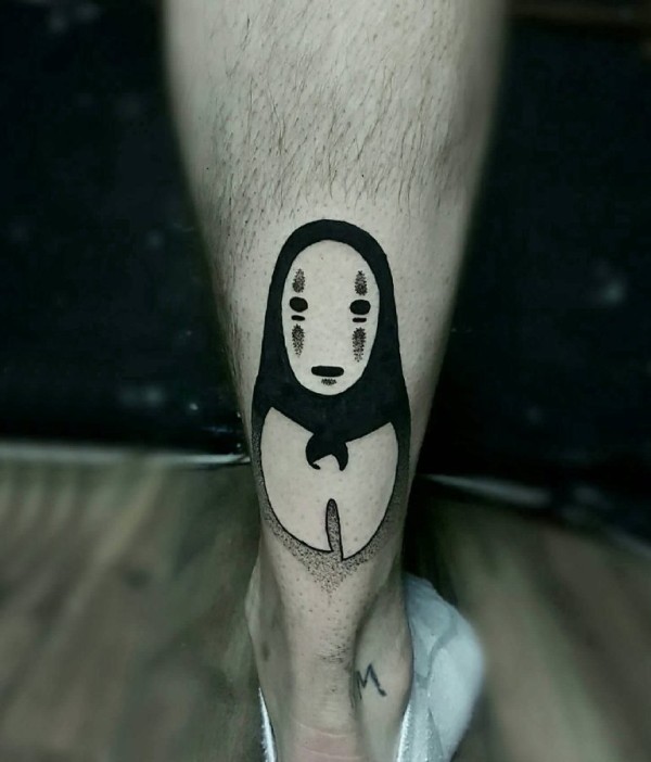 纹身卡通 男生小腿上黑色的无脸人纹身图片