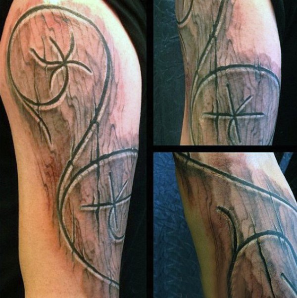 纹身树木的图像 黑灰暗沉的木刻纹身图案