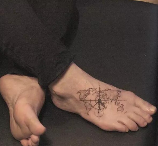 大臂纹身图 女生大臂上地图和指南针纹身图片