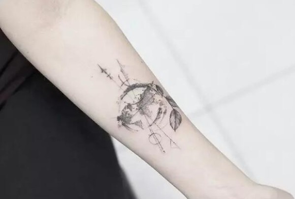 大臂纹身图 女生大臂上地图和指南针纹身图片