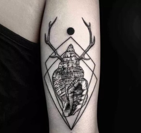贝壳图案纹身 女生手臂上黑色纹身图片