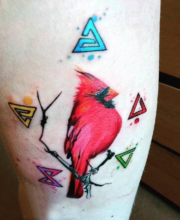 纹身鸟 男生大腿上三角形和小鸟纹身图片
