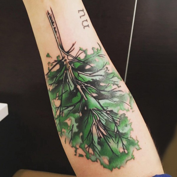 树纹身 女生手臂上彩色的大树纹身图片