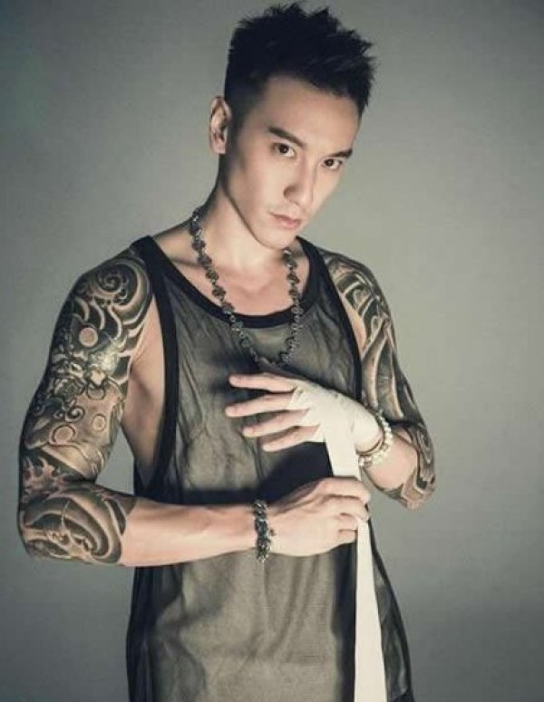 王阳明的纹身 明星手臂上黑灰色的花臂纹身图片
