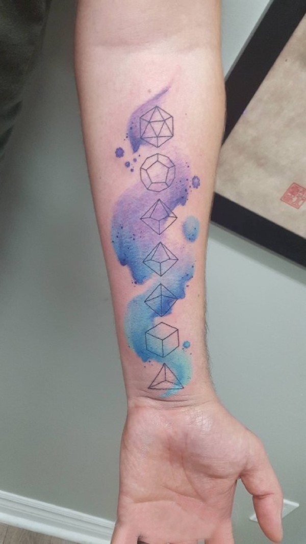 几何元素纹身 男生手臂上彩色的几何图形纹身图片
