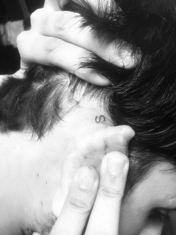 耳后纹身图案 男生耳后黑色的字母S纹身图片