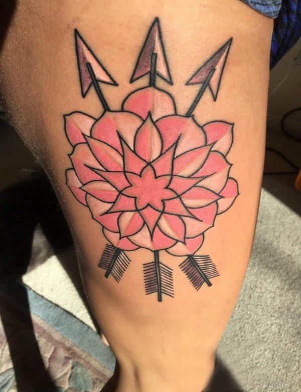纹身大腿男 男生大腿上箭矢和花朵纹身图片