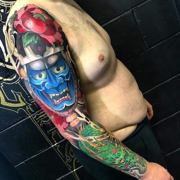 手臂纹身图片 男生手臂上龙和般若纹身图片